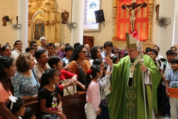ERP. El Arzobispo, Monseñor José Antonio Eguren Anselmi, S.C.V., presidió la Santa Misa correspondiente al XXXI Domingo del Tiempo Ordinario en la Basílica Catedral de Piura. La Eucaristía fue ofrecida en acción de gracias por la reciente canonización de San Manuel Gonzáles García, fundador de la Unión Eucarística Reparadora.