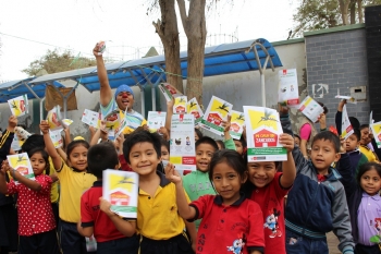 Acompañados del clown Pantunflas y al ritmo de “Cambiar, eliminar y voltear”, los niños de la institución educativa Rayito de Sol aprendieron la importancia de cambiar el agua de los floreros por arena húmeda, así como eliminar los criaderos e inservibles y voltear los objetos que puedan almacenar agua de lluvia.