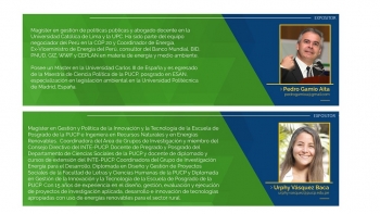 El evento tiene con objetivo ayudar a empoderar a la región frente al reto del desarrollo sostenible regional, así como brindar a referentes locales los elementos teóricos y prácticos que contribuyan al diseño y desarrollo de propuestas de mitigación y adaptación al cambio climático, a partir de la facilitación de procesos de desarrollo de iniciativas con participación ciudadana, como son las energías renovables. Contaremos con expositores de talla internacional, adjunto CVs.