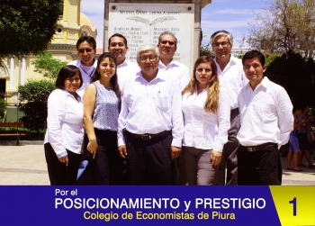 ERP. Con un equipo que integra la juventud y la experiencia la Lista N° 1 liderada por el Econ. Jaime Romero Zapata ganó las elecciones para renovar la Junta Directiva del Colegio de Economistas de Piura y en reemplazo de Mario Arellano Ramírez, quien ejerció este cargo en los dos últimos años. Le acompaña en el Vice Decanato Diana Palacios Torres y como Director Secretario la Econ. Manuela Purizaca Ruiz.