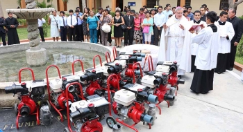 Igualmente Cáritas Piura y Tumbes ha adquirido 10 motobombas marca Honda de 4 pulgadas para evacuación de aguas estancadas que son fuente de muchas enfermedades. Actualmente se viene capacitando a 20 operarios voluntarios para su correcto uso. Estos equipos serán destinados a cubrir los requerimientos de ayuda de las diferentes zonas donde se les necesite. Monseñor Eguren bendijo estos modernos equipos que pronto serán puestos al servicio de las comunidades que lo necesiten. Se estima que 7 de estos modernos equipos permanecerán en Piura mientras que los otros 3 irán a Tumbes.