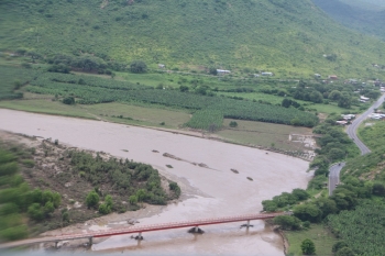 Finalmente, los ministros y autoridades regionales sobrevolaron Morropón, siguiendo el cauce del río Piura, hasta el puente Independencia y pueblos aledaños, para ver las zonas afectadas por las lluvias.
