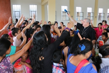 En otro momento de su homilía Monseñor Eguren exhortó a los presentes a no caer en la desesperanza a pesar de los problemas y dificultades que se puedan presentar: “En estos días estamos pasando por pruebas muy difíciles en Piura y Tumbes con lluvias fortísimas, tormentas eléctricas e inundaciones. Hay miles de damnificados, hay familias que han perdido a un ser querido, y otras sus casas y todos sus bienes. Ante estos acontecimientos nos puede pasar, como a los apóstoles, que nos dejemos vencer por el desaliento y la desesperación. Si bien el dolor es grande, el cristiano jamás debe caer en la tentación preferida del demonio: la desesperanza. No perdamos la esperanza porque Dios camina con nosotros. ¡Jesús no nos deja solos! Camina y nos lleva de la mano junto con su Madre Santa María. Él ha vencido el mal y nos ha abierto el camino de la vida. Él nos da las fuerzas necesarias para seguir luchando, para salir adelante y estar más unidos que nunca”.