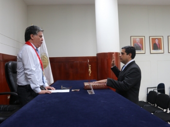 ERP. En breve ceremonia realizada en el auditorio "Walter Guerrero Guerrero" de la sede principal, el Presidente de la Junta de Fiscales Superiores del Distrito Fiscal de Piura , Dr. Guillermo Castañeda Otsu tomó juramento de honor al Abog. Luis Alfredo Martín Guevara Valladares, como Fiscal Adjunto Provincial en el Despacho de la Fiscalía Provincial Corporativa Especializada en Delitos de Corrupción de Funcionarios de Piura.