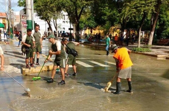 ERP. Una acción cívica de limpieza se viene realizando en el centro de la ciudad de Piura, dirigida por personal el Ejército Peruano y que ha convocado a diversos grupos de jóvenes, se informó.