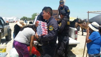 ERP. La Policía Nacional entregó más de 600 almuerzos en los caseríos de Chato Chico, Santa Rosa y San Pablo, ubicados en el distrito de Catacaos, y que fueron afectados por el desborde del río Piura, informó el General PNP Luis Bisso Pun, jefe policial de dicha región.