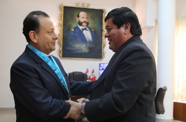 Por su parte, el Rector César Reyes, agradeció el apoyo que el representante de Relaciones Exteriores pueda brindar a la UNP, donde se viene trabajando arduamente en el mantenimiento y equipamiento de las Facultades afectadas. Asimismo, el Rector distinguió al Dr. Julio Cadenillas con la medalla de Visitante Ilustre.