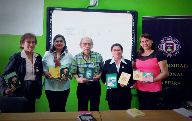 ERP. María Vásquez Vélez, Carlos Huamán Arellano, Gregorio Maza, Carmen Dioses Zárate y Mercedes Peña Vinces participaron como expositores en el Encuentro de Literatura y pintura regional organizado por la I.E. San Miguel de Piura en el marco de su 182 aniversario de creación.