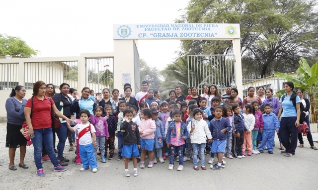 ERP. Con entusiasmo y alegría niños y niñas de la Institución Educativa Inicial N° 1372 “Los Claveles” del distrito Veintiséis de Octubre, visitaron los Centros de Producción Granja de Zootecnia y Piscigranja de Pesquería de la Universidad Nacional de Piura (UNP), el 10 de octubre de 2017.