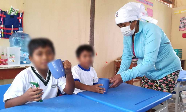 Los docentes, padres y madres de familia se han organizado para preparar los alimentos de los estudiantes a fin de que inicien la jornada con todo el entusiasmo para aprender.