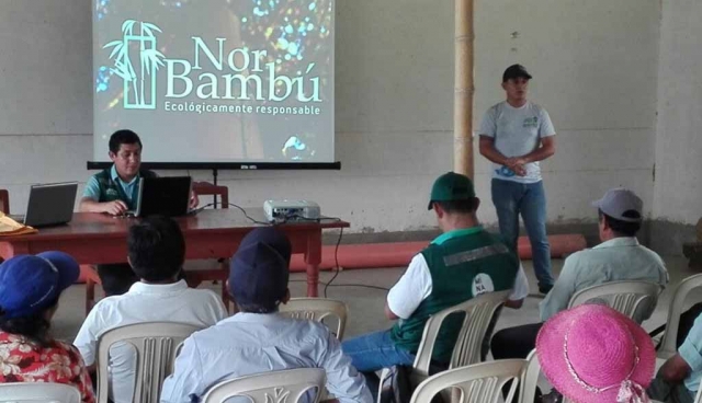 A su turno, el ingeniero Nelvyn Meléndez Pereyra de Servicio Forestal y de Flora Silvestre (SERFOR) instruyó a los presentes sobre la “Legalización de Parcelas de Bambú para la Comercialización”. Meléndez informo sobre los requisitos para adquirir los permisos necesarios para la siembra, cosecha y comercialización del material usado para construcción.