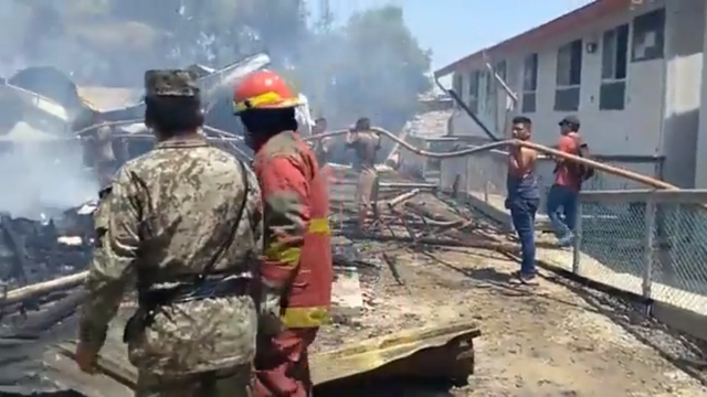 Informa que, luego de controlado el fuego se dio inicio a la limpieza y remoción de escombros en el área afectada, que abarca, además de las aulas mencionadas, un almacén multiusos con materiales educativos y mobiliario. En esta labor participa personal del Ejército y el Gobierno Regional.