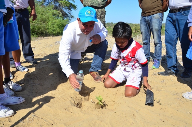 "La finalidad es reforestar 6 km de este tramo que inicia en Locuto hasta el caserío El Carmen, y que ha sido golpeado por los constantes incendios que han consumen miles de especies de flora y hectáreas de cultivos; además estamos educando a los alumnos a cuidar nuestro bosque seco", sostuvo el gerente de Desarrollo Económico y Gestión Ambiental, Guido Raffo Risco.