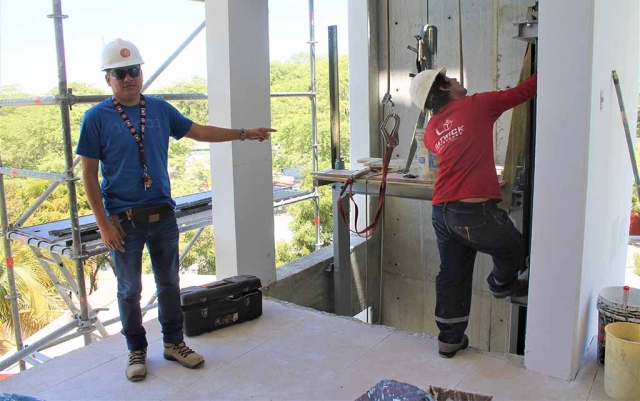 ERP. El decano del Colegio de Ingenieros del Perú – Consejo Departamental Piura, Ing. Hugo Fidel Garcés Solano, dio a conocer que se están realizando los trabajos de instalación del ascensor panorámico, el mismo que cuenta con cinco paradas destinadas para los cinco niveles con los que cuenta la nueva infraestructura del edificio emblemático del CIP CD Piura.