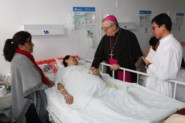 Después de orar ante el Santísimo Sacramento en la capilla del Hospital, visitó el área de Oncología donde sostuvo un emotivo diálogo con los pacientes, quienes le comentaron sobre el excelente trato que vienen recibiendo y la gran calidad humana del personal médico y de enfermeras que los atienden.