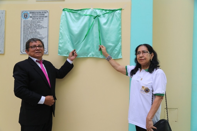 ERP. Los ingresantes de la Facultad de Agronomía del año 1968 de la Universidad Nacional de Piura, con motivo a la celebración de sus bodas de oro, develaron la placa recordatoria que lleva el nombre de la promoción “Ing. Arturo Daniel Montesinos Vassalo”, el 28 de diciembre de 2018.