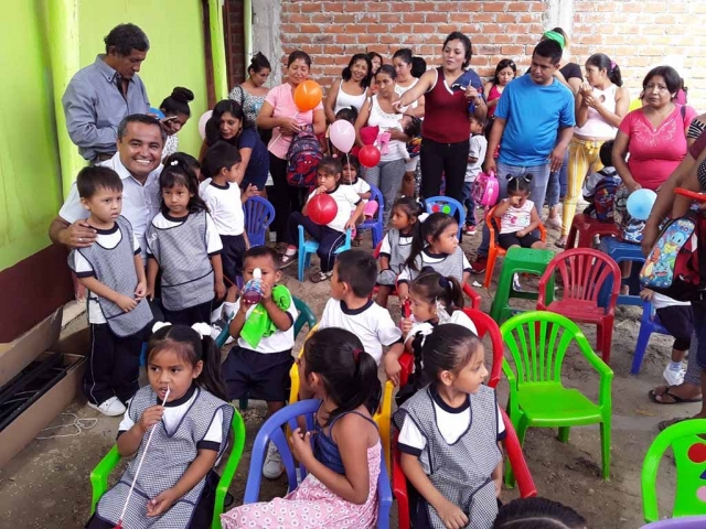 Además, Aguilar Silva, al dirigirse a los padres de familia y a los niños, ofreció el mejoramiento de los servicios higiénicos de cada uno de los once Pronoeis.