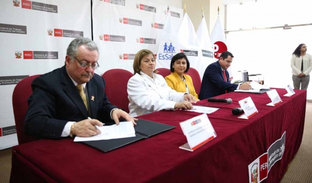 Dicha suscripción estuvo a cargo del gobernador regional de Piura, Servando García, y el gerente general de EsSalud, Alfredo Barredo, en la sede central del MTPE. Estuvieron presentes la titular del sector, Sylvia Cáceres, y su homóloga de Salud, Zulema Tomás.