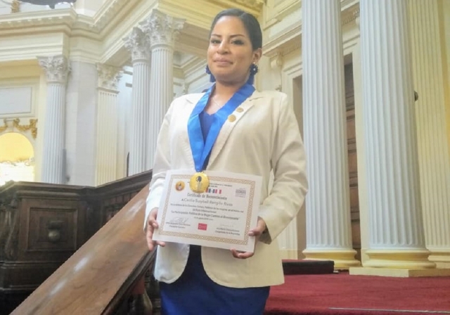 Cecilia Rengifo recibe reconocimiento por trabajo a favor de la mujer
