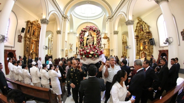 ERP. Celebrando un día especial para los católicos del país y el mundo, el Arzobispo Monseñor José Antonio Eguren Anselmi, S.C.V., presidió la Santa Misa en la Basílica Catedral de nuestra ciudad, en homenaje a la primera flor de santidad de América, Patrona de la Policía Nacional del Perú y de las Enfermeras de nuestro país. Concelebraron la Eucaristía el R.P. Felizardo Arrascue, Capellán de la Policía Nacional en Piura y el R.P. Wilfredo Gonza, Capellán del Ejército.