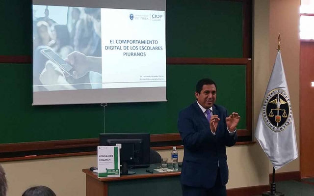 La presentación estuvo a cargo del doctor Fernando Huamán Flores, director de la investigación y especialista en Opinión Pública de dicha casa de estudios. Durante su exposición, Huamán Flores subrayó que los padres de familia no controlan el uso que sus hijos dan a internet: el 64% de los alumnos afirma ser poco o nada supervisado. “Quienes están a cargo de la educación de los jóvenes deberían prestar más atención a lo que estos hacen en internet, sobre todo, cuando resulta común que sean contactados por extraños en redes sociales”, manifestó el experto.