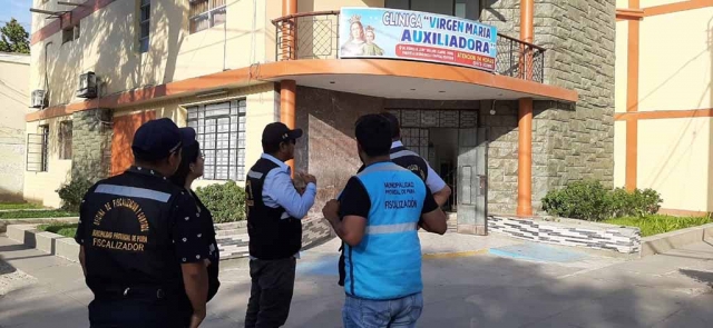 ERP. En operativo conjunto entre Personal de la oficina de Fiscalización de la Municipalidad Provincial de Piura, Susalud y la Dirección Regional de Salud, clausuraron la clínica María Auxiliadora, ubicada en la Urb. Clark - frente de la puerta de emergencia del hospital Reátegui, dado que si bien este establecimiento contaba con la documentación en regla, no reunía las condiciones de higiene correspondientes.