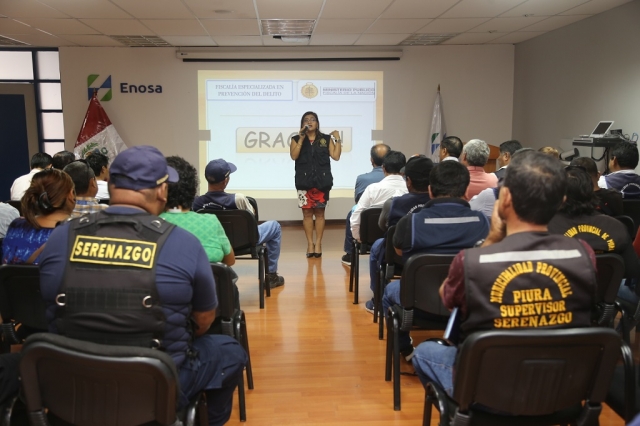 La capacitación contó con la presencia de la Fiscal Provincial de la Segunda Fiscalía Provincial Transitoria de Piura, Carmen Zapata Benites, quien abordó la problemática sobre los riesgos eléctricos que se presentan en las fiestas de año nuevo que amerita un mayor control y supervisión, así como ejecución de acciones operativas de manera preventiva para evitar o minimizar los casos de riesgos contra la población en general en centros de abastas, de esparcimientos entre otros.