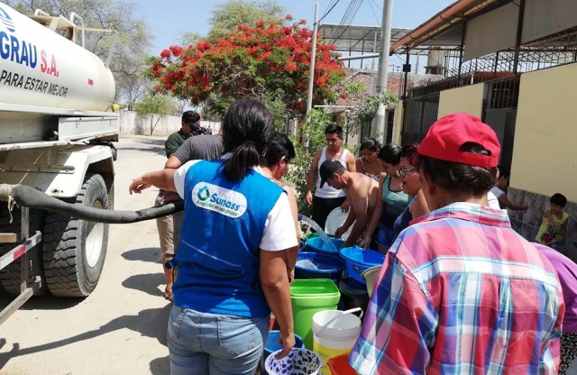 La Sunass está recorriendo las zonas afectadas de Piura, Castilla, Veintiséis de Octubre y Sullana, verificando que la EPS Grau cumpla con abastecer a la población a través de los camiones cisterna que ha dispuesto y también con agua producida en 24 pozos subterráneos activos las 24 horas del día. Asimismo, está brindando orientación a los usuarios sobre los derechos que les asisten en este tipo de situaciones.