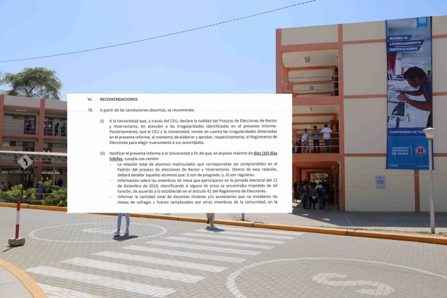 El amplio documento, precisa igualmente, que la Dirección de Documentación e Información Universitaria y Registro de Grados y Títulos (Digrat) deberá considerar el informe al momento de evaluar la solicitud de registro de los datos de las autoridades que habrían sido elegidas en el marco del proceso de elecciones de Rector y Vicerrectores de la Universidad Nacional de Piura.