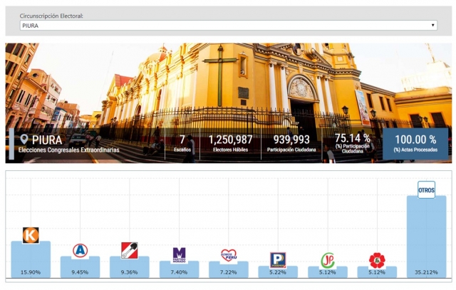 ERP. El Jurado Electoral Especial de Piura, revisó gran parte de las actas observadas y la Oficina Nacional de Procesos Electorales avanzó con el cómputo de los resultados de las Elecciones Congresales Extraordinarias 2020 del último domingo. Según este nuevo resultado, la tendencia es la misma y de los 7 congresistas que corresponden a Piura, 3 serían para Fuerza Popular y 1 les correspondería a Alianza para el Progreso, Acción Popular, Partido Morado y Somos Perú.