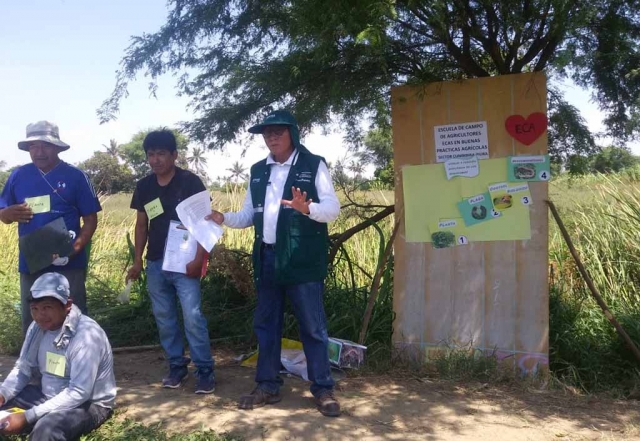 Las escuelas de campo son parte de la metodología que utiliza el Programa de Desarrollo de Sanidad Agraria e Inocuidad Agroalimentaria que ejecuta SENASA, para contribuir con la mejora de la sanidad agraria de 4 491 hectáreas de frejol caupí, que se cultivan en los valles de la región Piura.