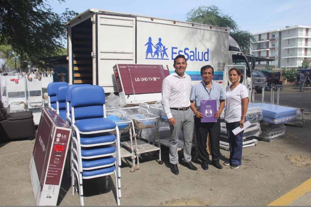 La universidad entregó 85 muebles, entre escritorios, sillas, veladores, biombos, camas-camillas, camas-cunas neonatales y pediátricas; sillones, sillas de ruedas y portasueros, además de seis televisores smart TV de 65 pulgadas y generador de un aire acondicionado.