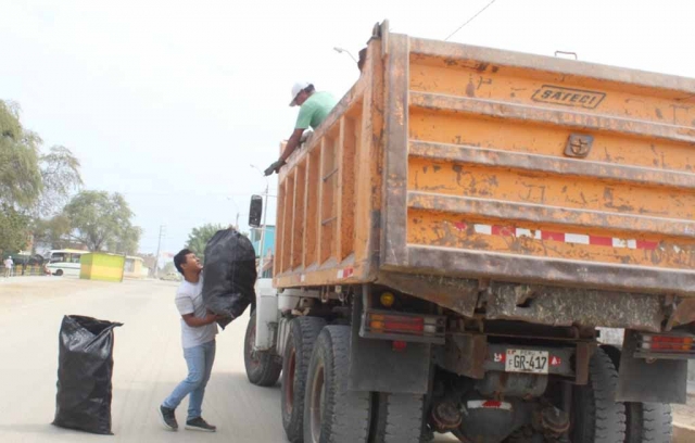 La comuna, a través de la gerencia de Servicios Públicos Locales, entregó sacos para que personal del Ejército y FAP acopie los inservibles, a su vez, con apoyo de maquinaria pesada y personal obrero.