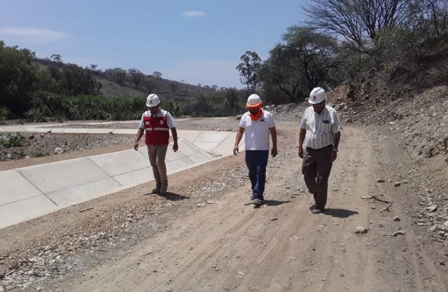 El gerente informó que la obra tiene un avance del 80%, y los trabajos que se vienen realizando son: revestimiento del canal Fénix de 1, 200 km y del canal Trigo 5.600 km, trabajos preliminares en trazo y replanteo, desbroce y limpieza de vegetales, una bocatoma de captación directa, revestimiento de 8,064 metros de caja de canales de sección trapezoidal, 40 tomas laterales, 2 partidor, 7 retenciones, 3 cruces vehiculares tipo alcantarilla, 6 puentes peatonales, 1 cruce de quebrada, 3 rápidas, 1 retención típica, 1 pozo de disipación y obras de mitigación.