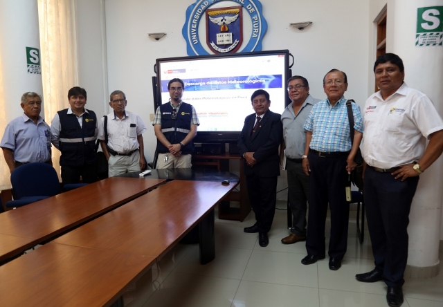 ERP. Ken Takahasi Guevara, Presidente Ejecutivo del Servicio Nacional de Meteorología e Hidrología del Perú (SENMAHI) se reunió con el Dr. José del Carmen Silva Mechato, Vicerrector de Investigación de la Universidad Nacional de Piura (UNP) para afianzar el convenio específico que existe entre ambas instituciones y a su vez presentar los posibles temas de investigación a realizarse durante el año gracias a la nueva estación meteorológica Miraflores ubicada en el campus de la UNP.