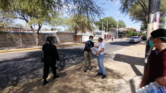 A través de coordinaciones con las instituciones y autoridades, los funcionarios de la empresa, representados por Wu Bin, Du Chenxgian y Gerardo Ramos, hicieron la entrega de miles de botellas de agua al coronel PNP Edward Espinoza López, y a los diversos agentes apostados en diversas calles de la región.