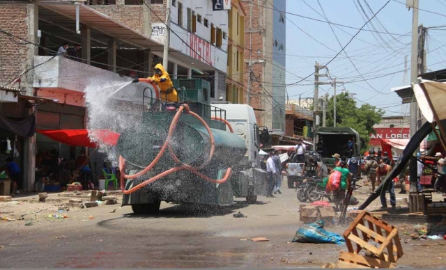 ERP. La Municipalidad de Piura, a través de la gerencia de Medio ambiente, continuó con el programa de desinfección del mercado modelo para evitar la propagación del coronavirus , sin embargo el comercio ambulatorio continúa invadiendo las vías públicas.