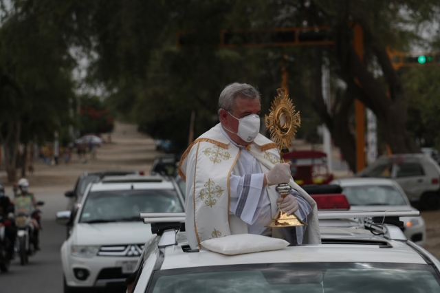 En efecto se vivió un momento único, cuando Jesús Eucaristía, realmente presente y resucitado en el Santísimo Sacramento del Altar, recorrió las calles de Piura, Castilla y 26 de Octubre. Esto fue considerado un regalo de Pascua del Señor, hecho posible gracias al apoyo del Ministerio del Interior y de la Policía Nacional, que permitieron que Jesús Sacramentado derrame su bendición a su paso, para así hacer sentir su presencia, su cercanía y su amor a todos los piuranos y desde aquí a toda la Región, a Tumbes, a nuestro País y al mundo entero, en estos momentos difíciles y de prueba que estamos viviendo.