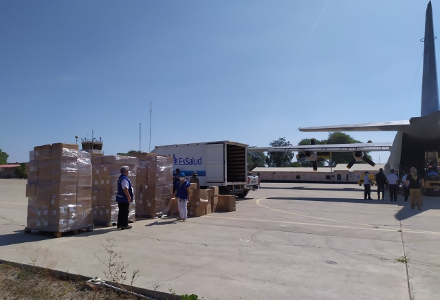 Este es el cuarto cargamento de medicamentos e insumos de protección que recibe la Red Asistencial Piura de EsSalud desde el inicio de la pandemia, para garantizar la protección de los trabajadores y atención de los pacientes en los establecimientos del sector.