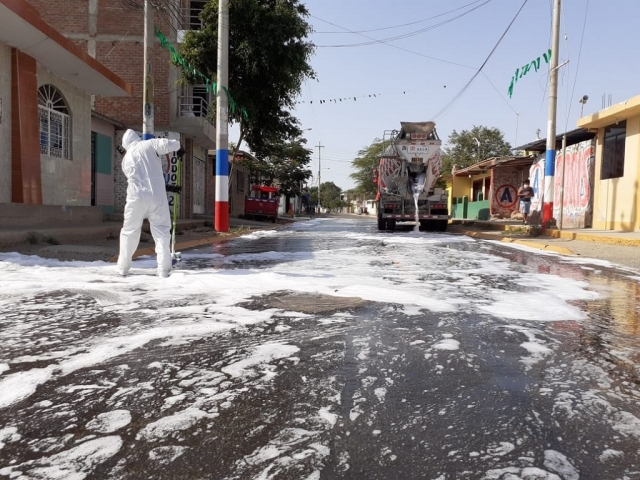 La actividad, inició en el óvalo Grau, para lo cual se dispuso de una mezcladora propia de la empresa, previamente preparada con 6 000 litros de agua, lejía y detergente, mezcla que permite disolver la capa lipídica del virus. Posteriormente, continuó por las calles aledañas al hospital Santa Rosa, el casco urbano de Piura, mercados mayoristas de Sechura y las localidades de Parachique y Bernal.