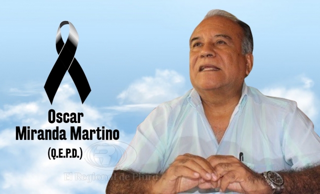 ERP. El exregidor y exalcalde de Piura, Dr. Oscar Raúl Miranda Martino (73) falleció este 12 de mayo víctima de una enfermedad que no pudo superar. Semanas atrás ingresó hacia la unidad de cuidados intensivos del Hospital Regional Cayetano Heredia, donde los médicos trataban afanosamente de normalizarlo; sin embargo, ello no fue posible y sucedió el triste desenlace que afecta a la política regional.