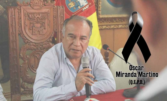 ERP. A través del Decreto de Alcaldía Nº 006-2020-A/MPP, se ha declarado duelo local laborable, en toda la jurisdicción de la provincia de Piura, del 12 al 14 de mayo, por el deceso del exalcalde de Piura, Óscar Miranda Martino, ocurrido hoy martes12 de mayo. Asimismo, la Municipalidad Provincial ha dispuesto el izamiento de la bandera de Piura a media asta en señal de duelo.