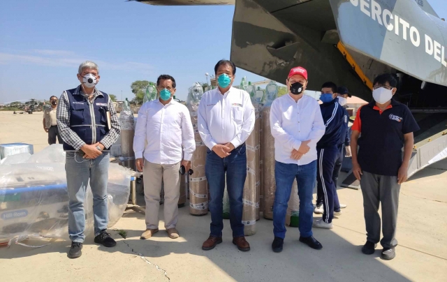 “Hemos traído los 30 balones de oxígeno adquiridos con la colaboración de todos los peruanos. Y, además, hoy sábado ha llegado la otra parte del lote de cerca de 8 toneladas de equipos médicos y de protección personal, así como las camas de la unidad de cuidados intensivos que servirán para ampliar la cobertura de atención en los hospitales de la región”, sostuvo Yáñez, representante del Poder Ejecutivo para la región Piura.