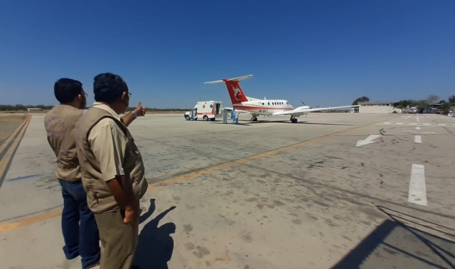 La avioneta que los trasladará llegó al aeropuerto de esta localidad y retornó de inmediato, para tal efecto, el Dr. Arnaldo Lachira Albán, decano del Colegio Médico de Piura, realizó coordinaciones previas con la finalidad de embarcar de manera adecuada a los pacientes indicados, quienes fueron contagiados cuando prestaban servicios en la Unidad Covid-19 de esta región.