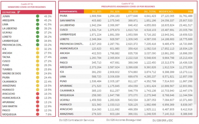 Un profesional que trabaja en la Gerencia de Presupuesto del Gobierno Regional habla claro y da su opinión respecto a las ineficiencias observadas "hubo una mala planificación del gasto" indica que desde el comienzo el presupuesto se concentró erróneamente en unidades ejecutoras que no están al frente o no prestaban directamente el servicio. Ejemplo, se asignó presupuesto para la Diresa UE 400. Después le pasaron recursos a Hospital Santa Rosa después se lo quitaron para centrar comprar en DIRESA".
