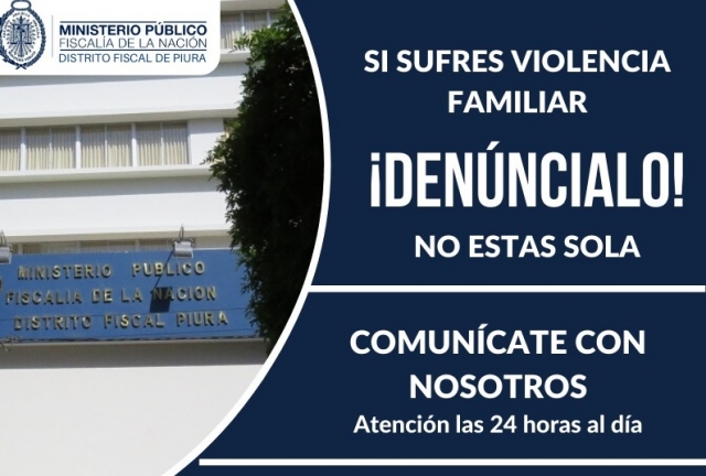 ERP. El Ministerio Público del Distrito Fiscal de Piura con el objetivo de promover el abordaje inmediato de los hechos de violencia contra las mujeres y los integrantes del grupo familiar, pone a disposición de la ciudadanía, las 24 horas del día, el WhatsApp 937559319 y el formulario online https://bit.ly/DenunciasVCMyLIGF.