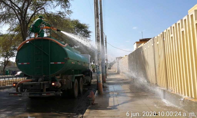 Según se informó, personal municipal desinfecta la zona con hiplocrito de sodio que se esparce a través de una cisterna. También se desinfectó la Av. Andrés Avelino Cáceres, cercana a dicho nosocomio.
