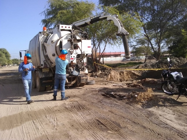 Asimismo, los representantes de la empresa indicaron que en el A.H. Nueva Esperanza, hoy domingo también se intervino con el equipo Hidrojet en el sistema de alcantarillado del sector 10, para continuar con el cambio de alrededor de 75 metros de tuberías; esto tras registrarse afloramientos de desagües en la manzana “T” de dicho sector.