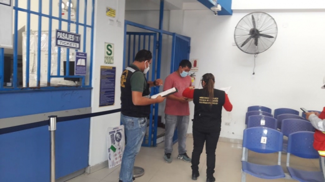 ERP. Ante el reinicio del transporte interprovincial, la Primera Fiscalía Provincial Especializada de Prevención del Delito de Piura participó en un operativo conjunto, dirigido a las principales empresas de transporte de carga y pasajeros, con el fin de prevenir delitos contra la salud pública y trata de personas.