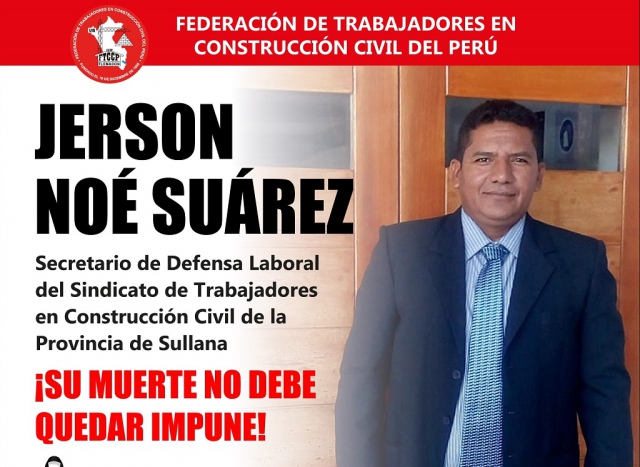 Asimismo, informó que ya son 19 los dirigentes de sindicatos afiliados a la FTCCP asesinados desde 2011 por las mafias de la construcción.